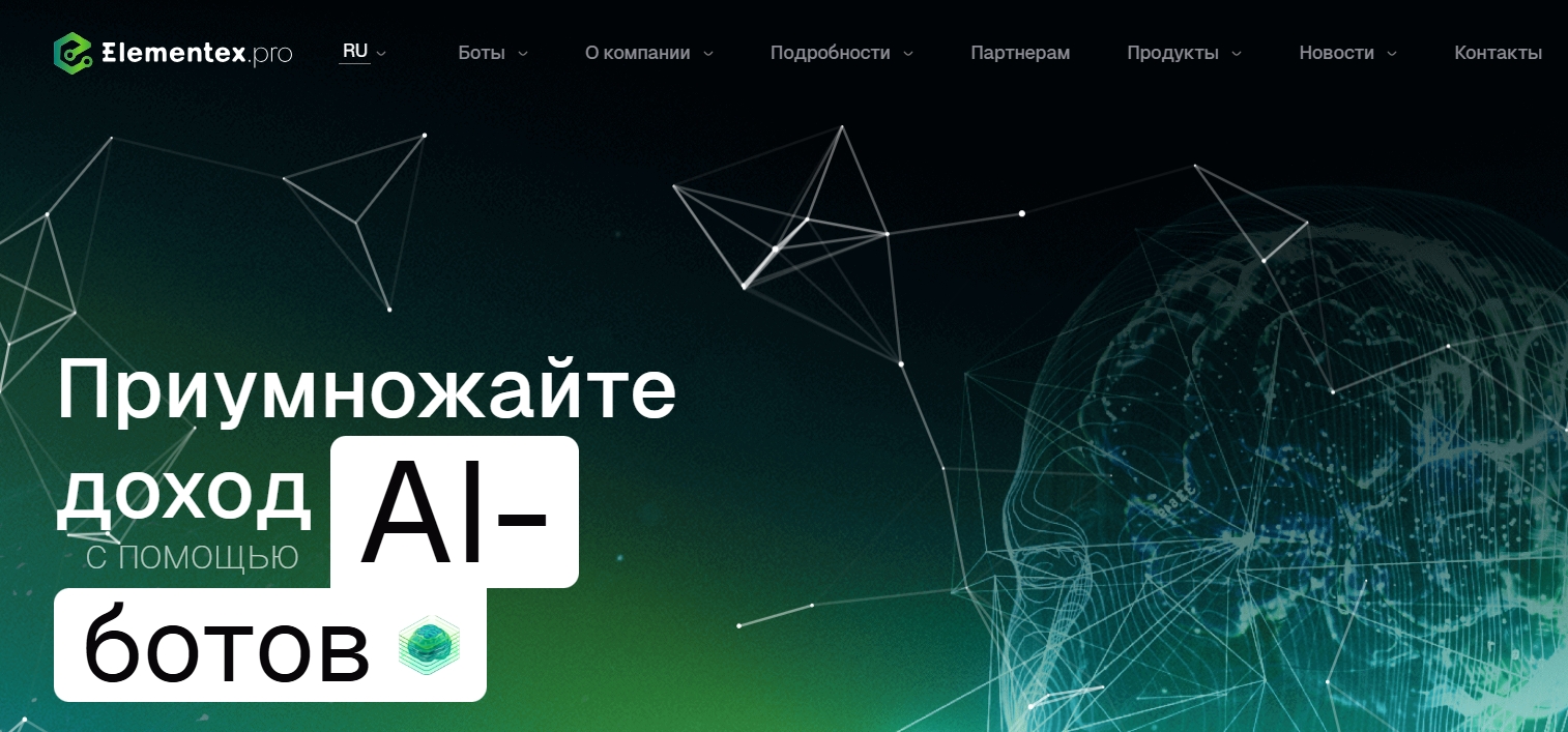 Вам предлагается создать свой кабинет на сайте Elementex, выбрать один из AI-ботов и внести деньги на счет. На этом Ваше участие в процессе заработка заканчивается. Остается, якобы, самое приятное — наблюдать, как растет баланс и выводить полученную прибыль в любое удобное время.