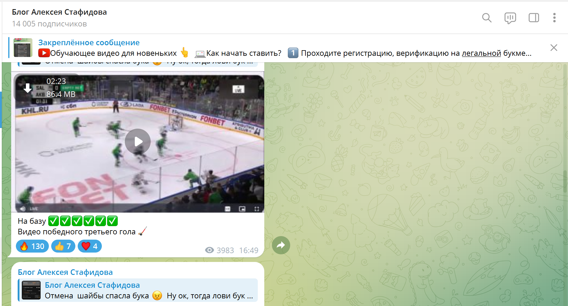 В целом, «БЛОГ АЛЕКСЕЯ СТАФИДОВА» — это нормальный, честный телеграм по ставкам для тех, кто хочет понимать, что он ставит, а не просто слепо жать кнопки. Канал точно заслуживает внимания, особенно если устал от откровенного скама и пустых обещаний.