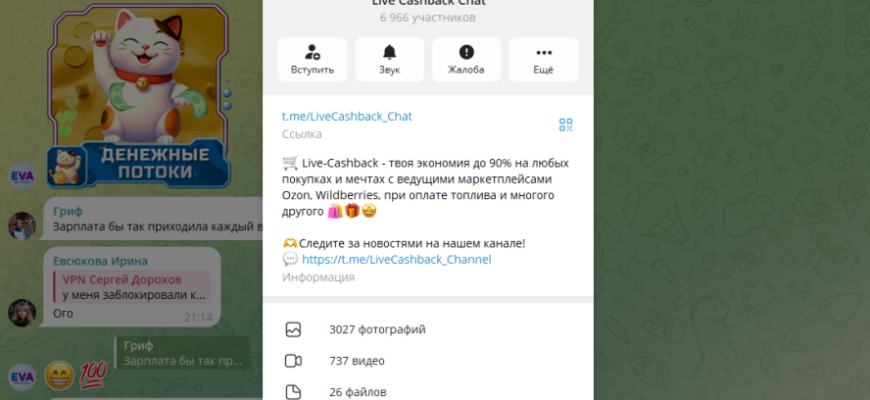 - Live-Cashback — канал, где публикуется все о сервисе — информация, новости, онлайн-встречи.