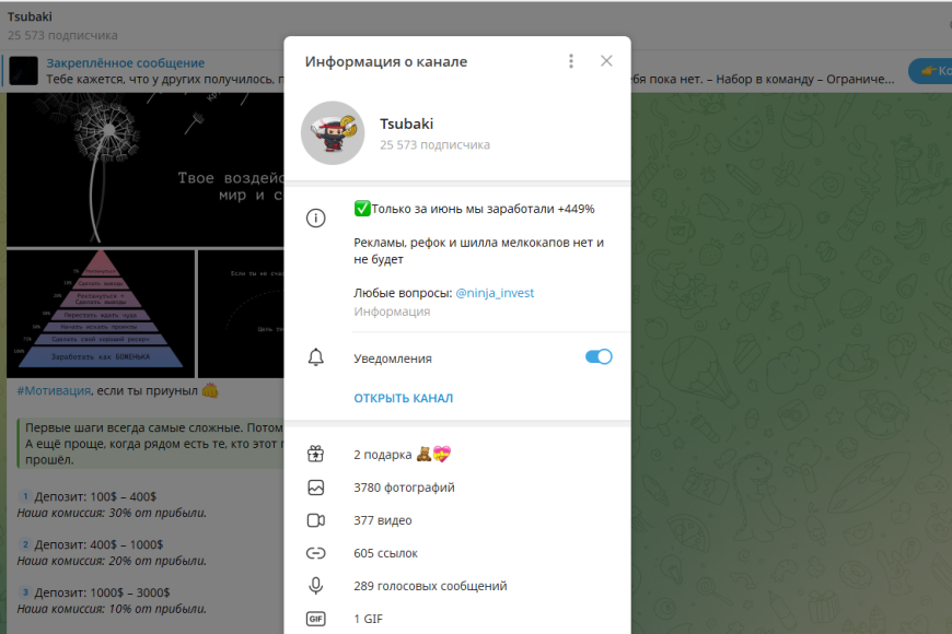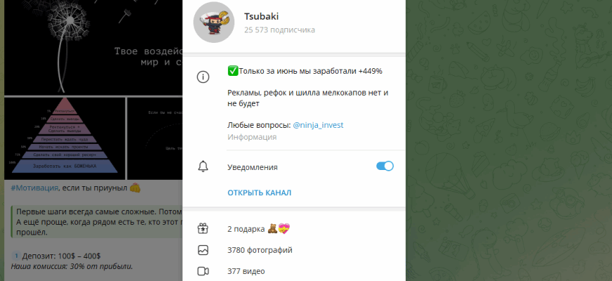 Его проекты в Телеграме созданы лишь с целью выманивания денег с новых пользователей. Никакую пользу от подписки на канал Tsubaki вы не получите, а тем более, доход.